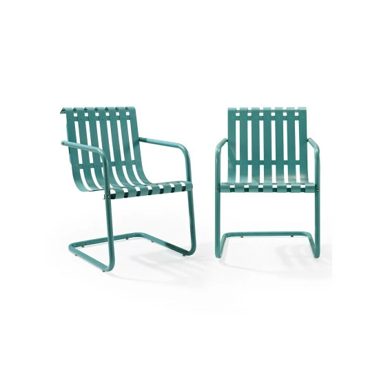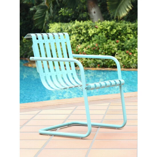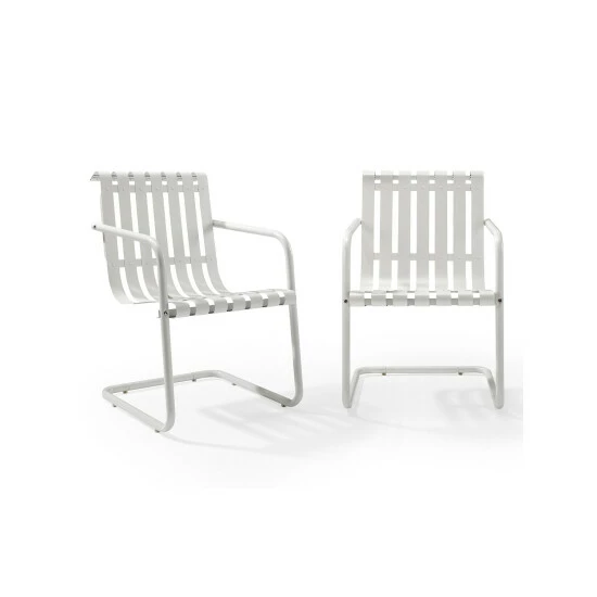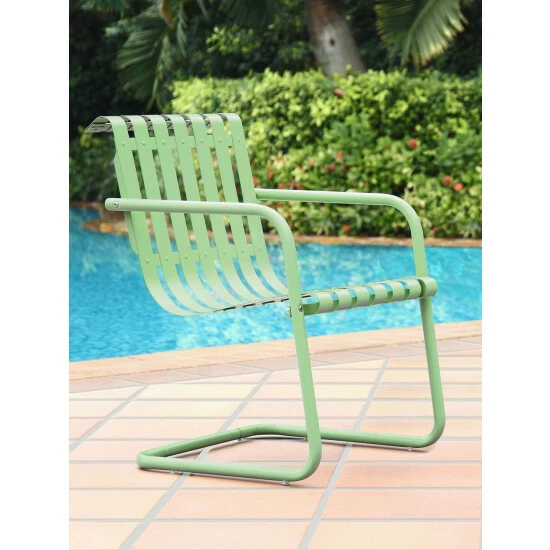 How can an all-metal chair be so darn comfortable? We don’t know, but these sling chairs have been a poolside and patio favorite since the 1940s. They still boast the same durable all-steel construction as ever, but they now have a high-gloss powder-coated finish, so they won’t rust in the rain or fade in the sun. The ribbon construction offers plenty of ventilation; these aren’t chairs you’ll stick to on a warm day. Sold in a set of two.