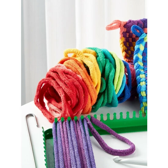 Nothing makes children feel prouder than a making a gift by hand—like the potholders they’ll create on this sturdy metal loom. The durable loom is made by a family-owned, 200-plus-year-old company. It’s the highest quality loom we could find and features child-safe edges. The colorful fabric loops are sized specifically for this loom and are easy to weave with the included hook. They won’t pop off and frustrate young crafters! The Potholder Kit comes with enough loops to make 2 potholders. We also offer an Extra Bag of Loops, which contains enough loops to make two potholders.
