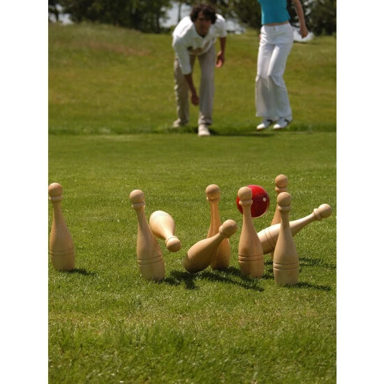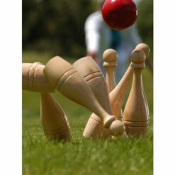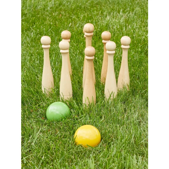 Skittles (or ninepins or lawn bowling) has been played at English inns, fairs, and festivals since medieval times. It’s simple to learn and physically undemanding yet curiously addictive. This game comes with eight premium beechwood pins, one premium beechwood kingpin, and two balls, all in a handy storage-and-carry case. There are many different versions of the game you can play with this set, and you’ll have fun learning them all.