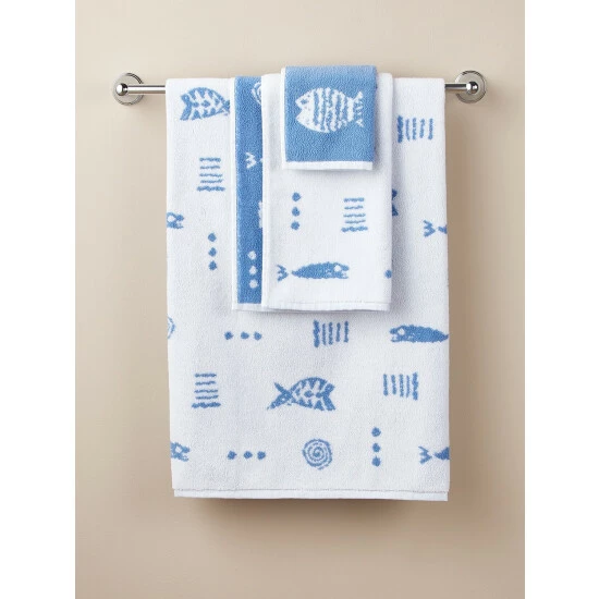 These plush bath towels are woven in Portugal—just for us—on traditional Jacquard looms, which create a pattern on both sides in reverse colors. Yarn-dyed cotton ensures the design will stay crisp and true—wash after wash. Add them to your bath, and the tropical Rock Fish design will make you think of fun in the sun whenever you see them.