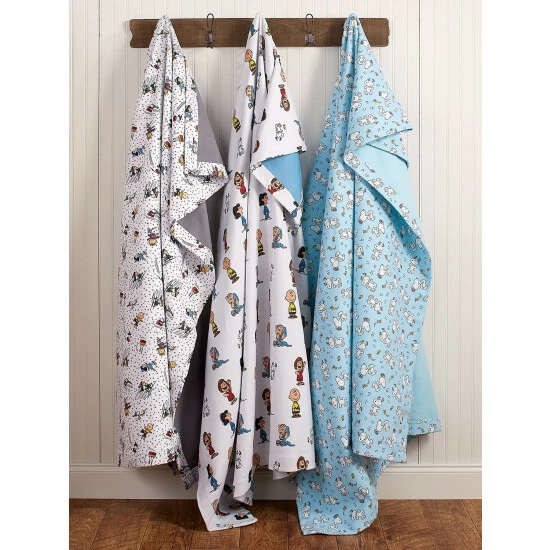 Snoopy and Woodstock will shake and shimmy their way into your heart every time you snuggle under this double-flannel blanket. This original design is made by combining two of our flannel sheet-blankets to create one extra-cozy, doubly warm blanket. One side features Snoopy and Woodstock and the other is solid blue, both sides are triple brushed for added softness and warmth.