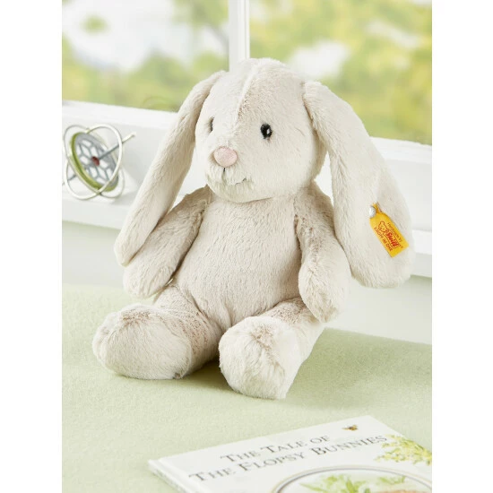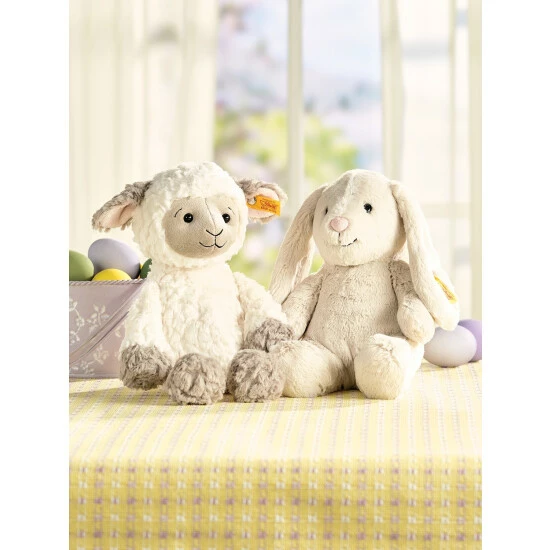 These original Steiff stuffedanimals are incredibly soft and crafted with quality…and plenty of love! Both are handmade by the skilled artisans at Steiff and feature theworld-famous”Button in Ear” trademark—asymbolof the highestquality. The sweet lamb and cuddly bunny have safety eyes and are machine washable, so you can keep them looking new.