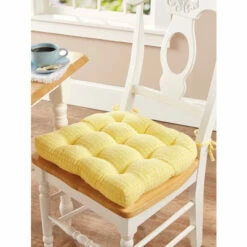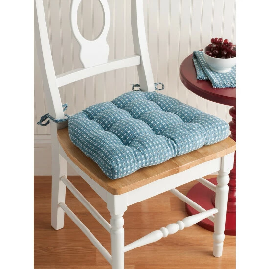 We know how much you love the traditional look and enduring quality of our Mountain Weave Table Linens, so we decided to offer our never-flatten chair pads in the same premium fabric. Each thick cushiony pad is filled with 2-1/2″ of resilient latex foam and tufted to keep the fill from shifting and has two ties to keep it securely in place. Available in two sizes: standard and jumbo.