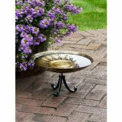 Even when it’s not being visited by birds, this big, bold birdbath in solid brass is a delightful focal point in your garden. The deeply embossed petal pattern is inspired by an African daisy and is available in pure brass or brass with antiqued red enamel accents. A sturdy powder-coated tripod stand is included.