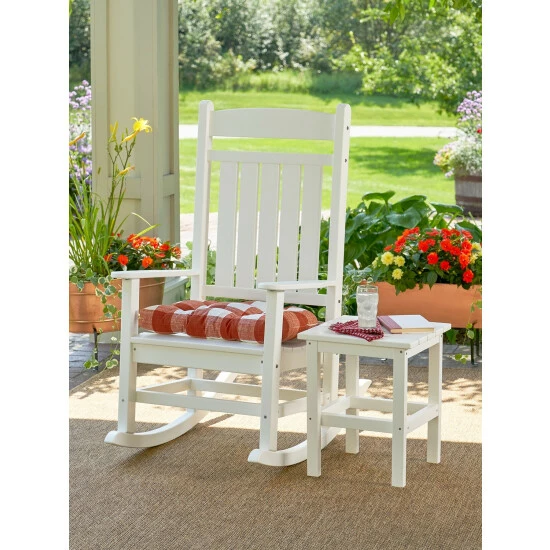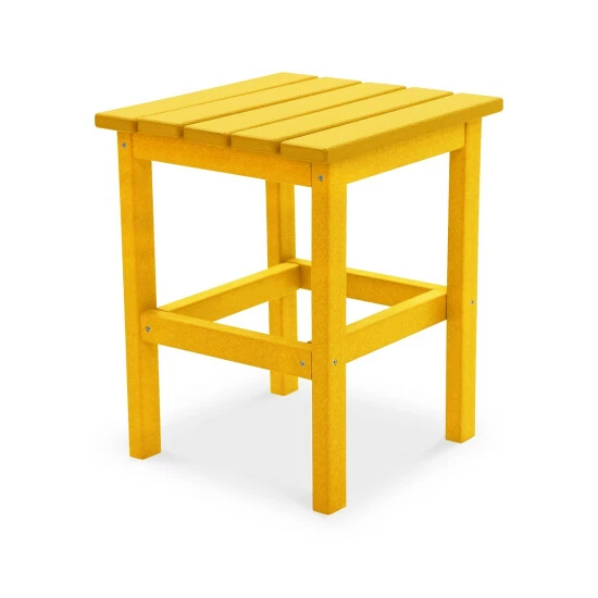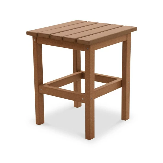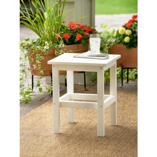 What good is it relaxing outdoors if you don’t have a place to set down a cool drink and some tasty snacks? This handy side table provides you with the perfect spot for both. It’s made from recycled HDPE lumber so it is as weather-resistant and durable as they come. It will never warp, rot, crack, chip, or splinter yet it looks like real wood and is designed to last and last. It’s also maintenance-free, so you’ll never have to paint or stain it. Pairs perfectly with all our All-Weather Rockers and Adirondack Chairs.
