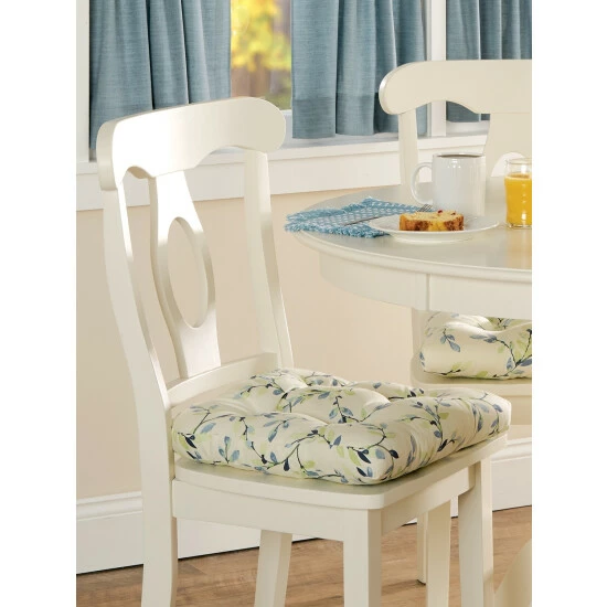 Each chair pad is thick, well-padded, and filled with a 2-1/2″ thick layer of plump, resilientpolyfill. The pads are covered in a durable cotton-blend fabric and have a non-skid bottom to keep them securely in place. They’re made to coordinate with our Arbor Lane Curtain Collection perfectly. Available in two sizes: standard and jumbo.