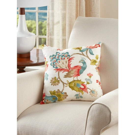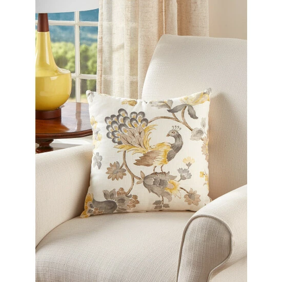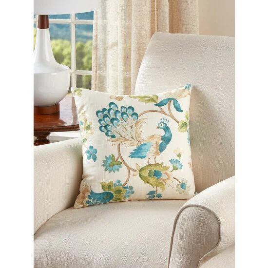 Give your bedroom or living room decor a finished look by adding a couple of our Arianna decorative throw pillows. They feature a contemporary aviary design that matches the coordinating curtains and valance perfectly. Finished withbraided cord gimp trim. Pillow is sold individually.