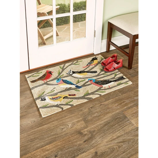 Nature’s beauty is literally at your doorstep, on the back patio, in the foyer, or in almost any room throughout your home with this bird lover’s rug. It’s skillfully hooked by hand using soft, weather-resistant yarn for the ultimate in comfort, artistry, and durability. And to keep the colorful perching birds from fading, the rug is specially treated to be weather resistant so it will continue to delight season after season.