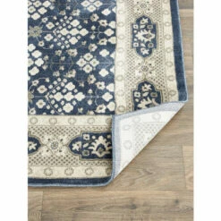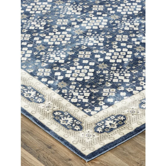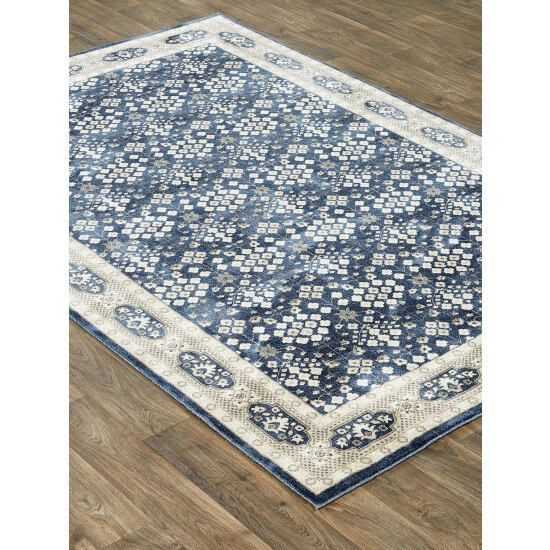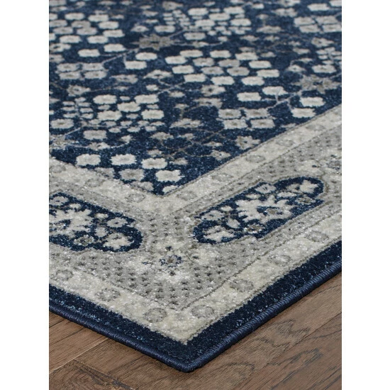 The alluring color combination of navy, gray, and ivory turns this otherwise classic rug into a contemporary masterpiece worthy of today’s eclectic furniture styles. The rug is expertly woven from silky-soft polypropylene, renowned for its ability to stand up to heavy traffic and to keep the colors looking like new longer.