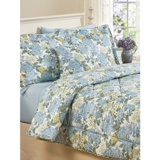 - Coordinating Blooming Hydrangea Rod Pocket Curtains (#84275), Tiers (#84274), Insert Valance (#84276), Comforter (#84281), andShower Curtain (#86649),sold separately