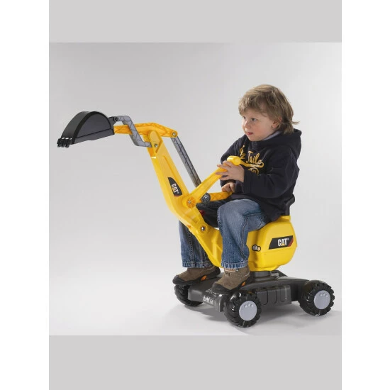 Energetic kids will love this sit-on toy with its rugged construction and instantly recognizable bright yellow color scheme. It has a fully articulated backhoe arm with tough resin bucket, and a seat that swivels 360 degrees to move big piles of dirt fast. The excavator rolls back and forth on wide-stance wheels that keep it stable while digging.