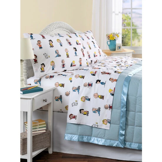 The whole gang is here, including Charlie Brown, Snoopy, Woodstock, Linus, Franklin, Peppermint Patty, Marcie, Schroeder, Pig Pen, Sally, and Lucy. These fun sheets are woven just for us in smooth, crisp cotton percale that just gets better with every wash.