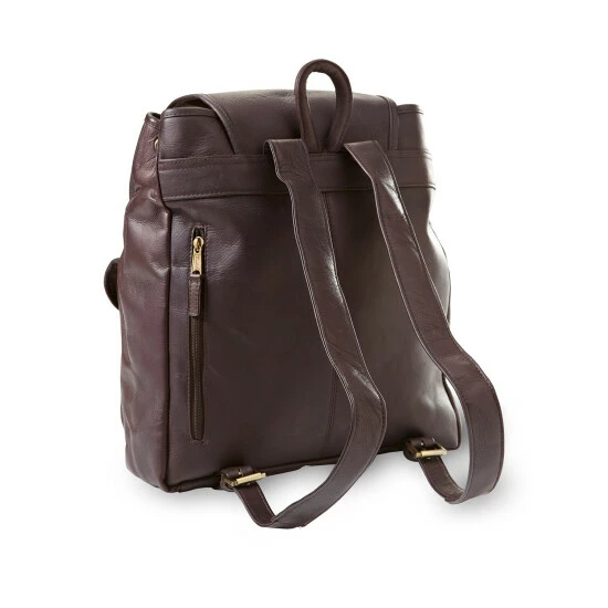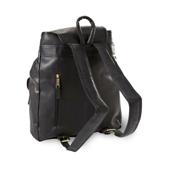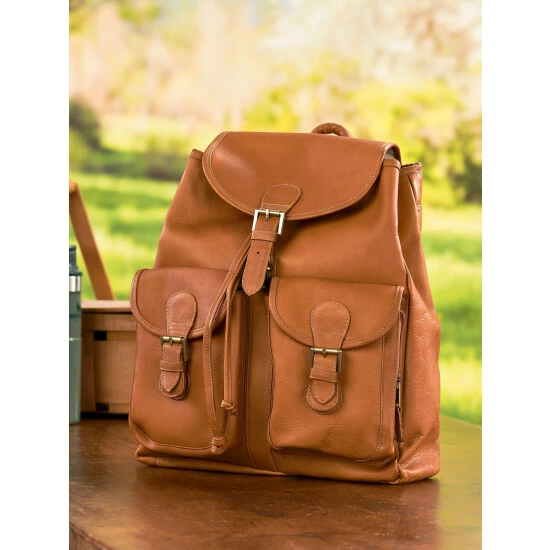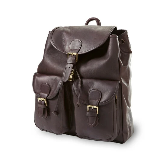 Whether you’re taking an overnight trip or heading to the office, with this versatile backpack you’ll have everything you need at the ready. It’s made from premium top-grain Colombian leather and has a main compartment with a drawstring closure so it opens fully for easy packing and cinches tight to keep your essentials secure. Underneath the buckled flap is a hidden slide-snap closure, which eliminates having to fuss with the buckle—the same is true for the two buckled exterior pockets. Other features include a full cotton canvas lining, an interior zip pocket, and a top handle and adjustable shoulder straps for easy carrying.