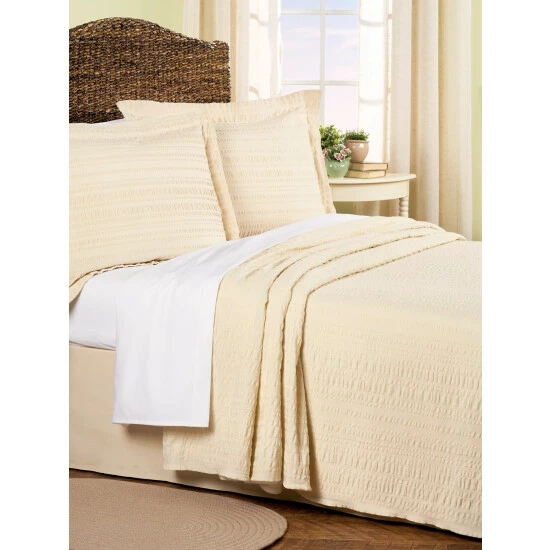 The classic shape also fits into smaller spaces, too! The base is textured ceramic, and the shade is off-white linen. Other features include a three-way socket and felted lamp base to protect tabletops and bedside tables.