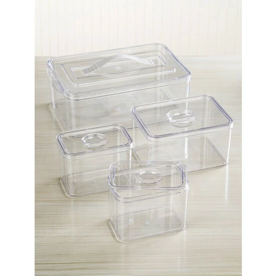 - Set includes one large bin (12-1/2″Lx8″Wx4-1/2″H), one medium bin (7-1/2″Lx5-3/4″Wx4″H), and two small bins(5-3/4″Lx3-3/4″Wx4″H)