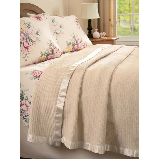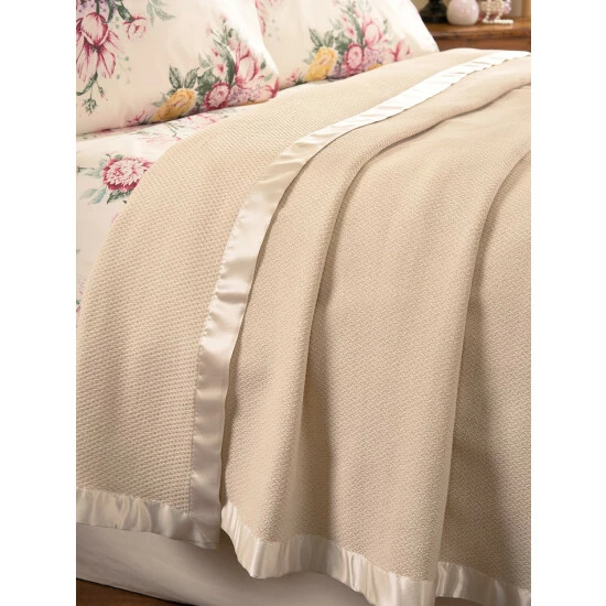 This snuggly blanket is so soft and extra comfy that you’ll want to use it year-round. It’s beautifully woven—just for us—in Portugal of the finest cotton yarns and finished on all four sides with irresistibly silky satin binding.