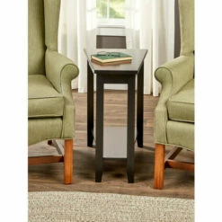 With its distinct shape, this side table fits perfectly between two chairs, allowing you to slightly angle them toward one another and create an intimate conversation space. It also adds a touch of country charm to any small or tight space. The table is sturdily constructed of rubberwood and features a lower shelf and Shaker-style legs.
