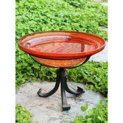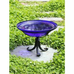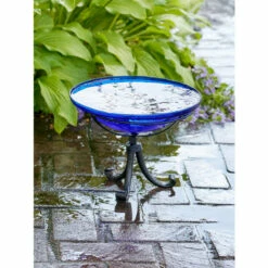 This birdbath not only provides a valuable source of water for birds in your yard, but it also provides a bright spot of color in your garden. It’s made of beautiful iridescent crackle glass, an artisan&’s technique where glass is worked, then partially cracked, then re-fused to create a network of lacy lines. The effect is dazzling, especially in sunlight—you’ll be tempted to get every color!