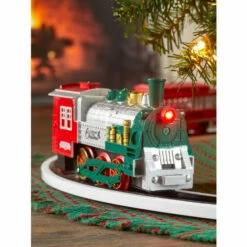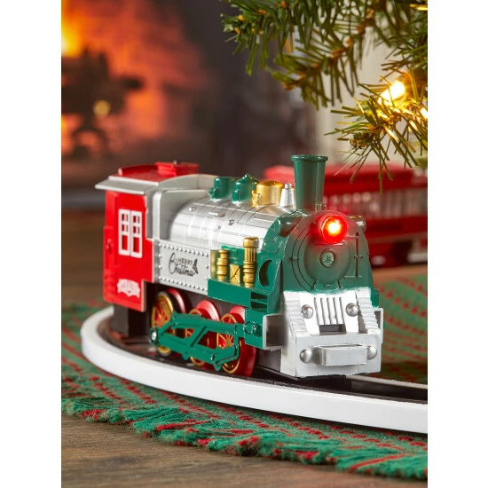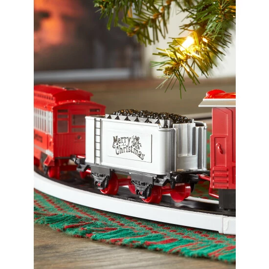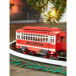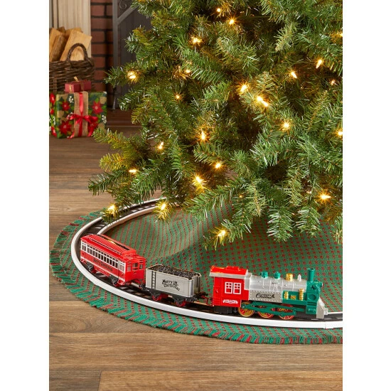 Having a train chug its way around the Christmas tree is a time-honored tradition. This unique train set offers two options—you can set it up the traditional way, on the floor, or up high around the middle of the tree for a festive new look. The set includes aspecially designed clamp and arm to secure the tracks to the tree’s center, a battery-operated locomotive, two train cars, and train tracks.