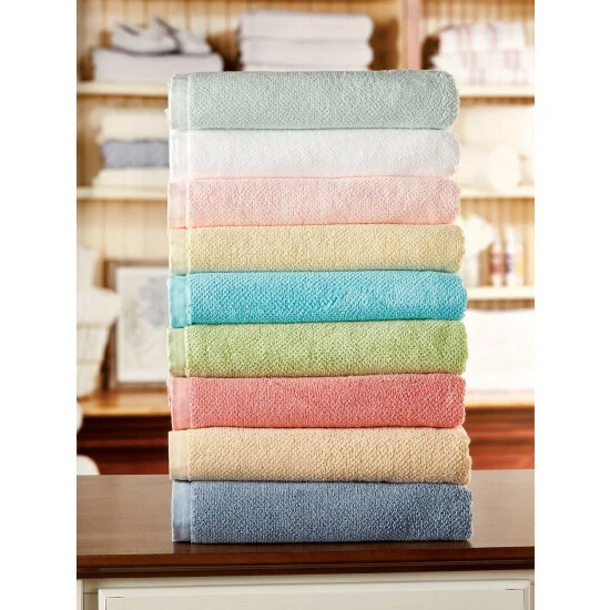 Bring a classic look to your bath with our beautifully textured bath towels. They have a 600 GSM fabric weight with a wonderfully soft, supple hand and a texture that enhances their absorbency and makes them resistant to pilling. They’re also woven with yarn-dyed cotton to ensure the colors stay rich and true for the life of the towel. Each towel/washcloth is finished with a finely woven border to enhance durability and reduce fraying. Sold as open-stock, so you can buy what you need.