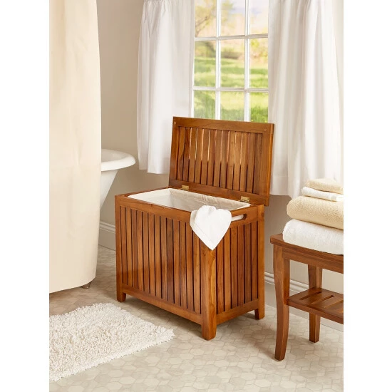 Teak wood is the best choice when you’re looking for a hamper that keeps laundry in its place and does so with great style. This hamper features a slatted design for airflow and includes two generously sized laundry bags—designed to hold a week’s worth of laundry. This hamper also does double duty as deck storage and is a great place to store clean or dirty pool towels.