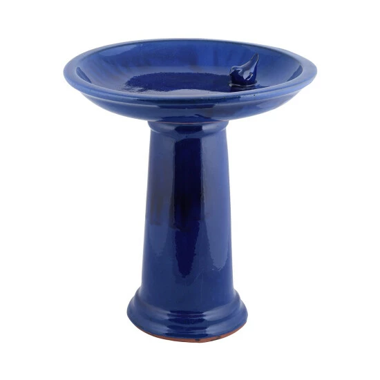 Birds of a feather will flock and frolic together when drawn to your yard by this enchanting birdbath. It’s beautifully made of ceramic with a lustrous glaze finish and features a generously sized bowl for drinking and bathing. A ceramic bird figurine adds the perfect decorative touch. The bowl separates from the pedestal for easy cleaning.