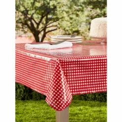 Back in the day, oilcloth used to be made by coating heavier-weight cotton with linseed oil, which worked great for a while until it started to crack and peel with age. This method became obsolete with the advent of noncracking plastics. Sadly, what replaced traditional oilcloth was flimsy plastic cloth. To make our oilcloth, we borrowed a page from yesteryear. We start with heavy-duty fabric and laminate it with a vinyl finish that’s guaranteed to never crack or peel.