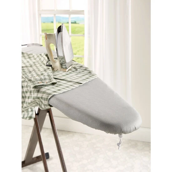 Here’s a simple way to save some time and effort while ironing, especially when you’re ironing your favorite cotton clothing. With its reflective surface, our heavy-duty metallic ironing board cover gets the most out of your iron by transferring its heat back into clothes. The stretchy, tight-fitting one-piece construction and extra-thick pad ensure a snug fit and a soft, smooth, wrinkle-free surface. You’ll use less time and elbow grease and still get perfectly smooth garments with crisply pressed hemlines, cuffs, and collars.