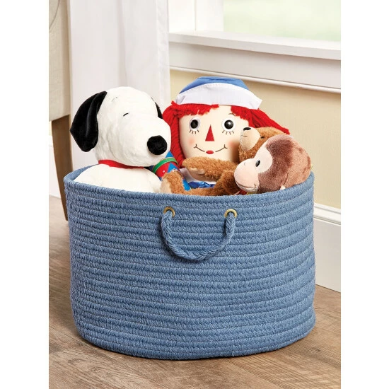 Inspired by the braided rugs that date back to Colonial times, our solid-color basket takes that durable, good-looking design and gives it an ingenious new use. The result is a new kind of portable storage for your home. This two-handled basket is large enough to accommodate extra towels for the bath, magazines for a den, and sewing needs (including yarn!) or toys for a bedroom. It’s really up to you! Out on the porch, or inside by a fireplace, you can even store a small supply of starter logs or kindling in it. The durable, yarn-dyed polypropylene ably resists stains and color-fading. Plus, this carefree bucket wipes clean in a jiffy.