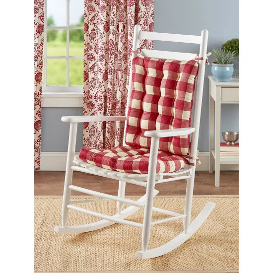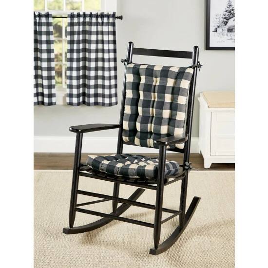 Our buffalo check rocker pad set includes two pads, one for the seat and one for the back. Both are filled with resilient latex foam to keep them from flattening and tufted to keep the fill in place (and to add a bit more loft, too). The back pad has ties at each corner and the seat cushion has ties at two corners—to help keep both cushions in place. Complements our Buffalo Check and Solid Cotton Duck Collections perfectly. Available in two sizes: standard and jumbo.