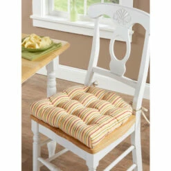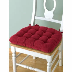 These tufted chair pads transform unforgiving seats into soft, cushiony places to settle down with a good book or cup of tea. More than just a decorative accent, our chair pads are thick, well-padded, and covered in a variety of fabrics in an array of colors and patterns. They’re filled with a plush 2-1/2″ layer of resilient latex foam that never goes flat, even after years of use. Each pad has ties at the top two corners to keep it securely in place.