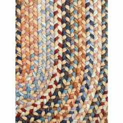 A pure wool rug may seem outmatched in this era of space-age synthetics. Don’t you believe it! Wool is an incredibly durable fabric with satisfying heft and a pleasing texture, even for bare feet. Each of our authentic New England rugs is braided and stitched by hand, the same way they have been since the 18th century. The braids are wrapped around a dense fiber core that retains its thickness and spring even in heavy traffic. Then the braids are stitched together into the traditional oblong spiral (again, by hand) using heavy upholstery-grade thread. They will beautify your home and save your feet from cold floors for many years. Reversible, too, for twice the wear.
