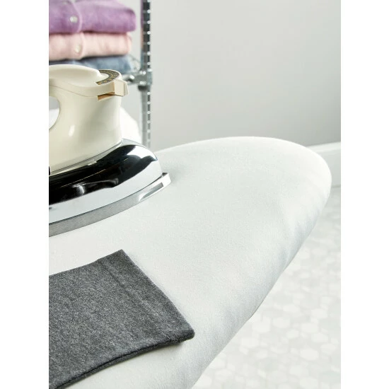 One and done! This heavy-duty ironing board pad has a scorch-resistant cotton-sheeting cover and an attached pad that’s 1/3″ thick for added cushioning so you can iron with ease. The cover/pad combo has an all-around elastic hem that stretches around your ironing board for a snug fit.