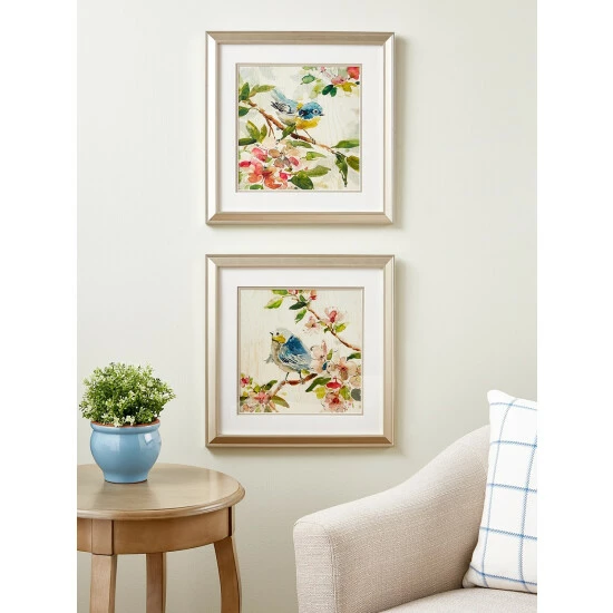 These art prints have a cheering color scheme that’s a little reminiscent of vintage wallpaper. The birds really stand out, yet the whole is very harmonious. Both prints arrive complete and ready to hang, including the print, frame, mat, glass, backing paper, and hanging hardware.
