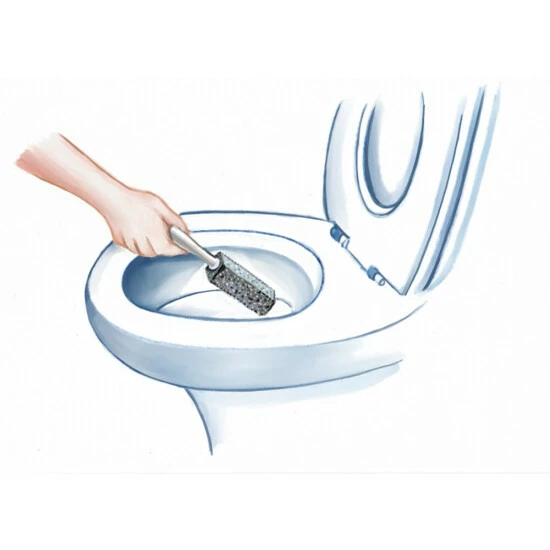 Here’s an easy and quick way to get rid of those embarrassing dirty-looking toilet bowl stains. Our ring eraser cleans even the toughest, most stubborn toilet bowl stains. —just wet the pumice-like stone, rub the stain, and the stain disappears.