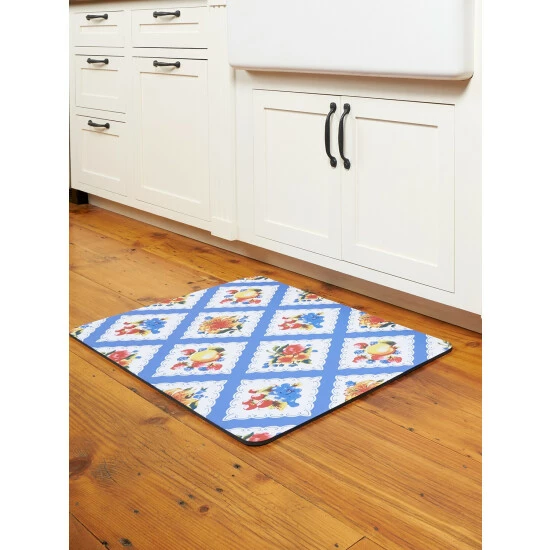 Say goodbye to aching feet and legs! Place one of these mats in front of your sink or stove and breathe a sigh of relief as you finish tasks and chores without fatigue. Bright and vibrant prints in the same patterns you love in our oilcloth. Skid-resistant backing keeps the mat in place. Plus, it’s machine washable too!