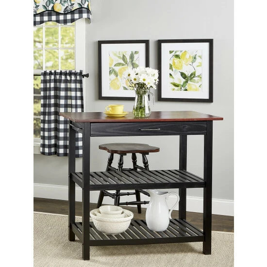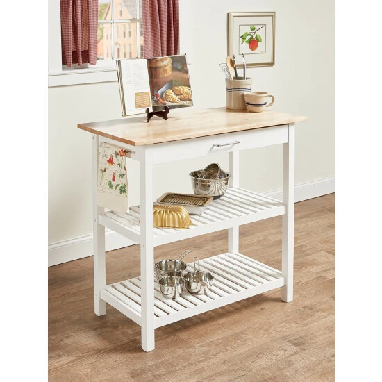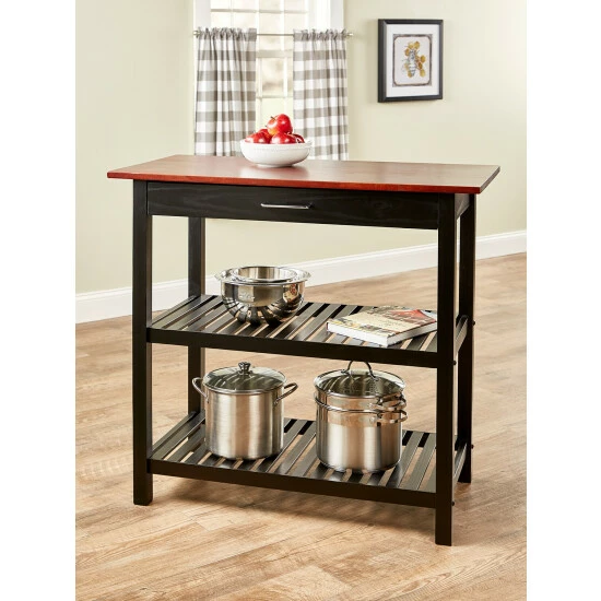 If you’re like us, you can always use more work and storage space in your kitchen—this beautiful kitchen island offers both. It’s sturdily constructed from solid wood and has a spacious countertop for kitchen prep. Plus, it has an easy-sliding drawer and two lower shelves to store all your essentials. There’s also a stainless steel towel rack to keep a kitchen towel within reach.