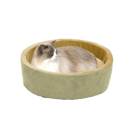 When bedtime comes, cats are heat-seeking creatures. This cozy nest gives them just a little tempting warmth with a safe, low-wattage heater, so they don’t wind up sleeping on the radiator. Dual thermostatic controls warm 10 to 15 degrees above ambient temperature, matching your kitty’s natural body temperature without overheating.