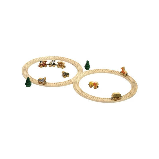 When going on safari, there is no better or more fun way for your little ones to travel than with this kid-powered train set. The set includes train cars inspired by animals you’d see on a real safari, including a tiger engine, giraffe car, gorilla car, lion car, elephant car, zebra car, panda car, and a leopard caboose. All the cars link together with magnets and chug along the grooved figure-8 track effortlessly. All pieces are crafted from locally harvested, sustainable hard maple here in Vermont, so they’ll stand up to all adventures your kids dream up over the years.