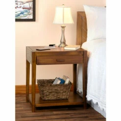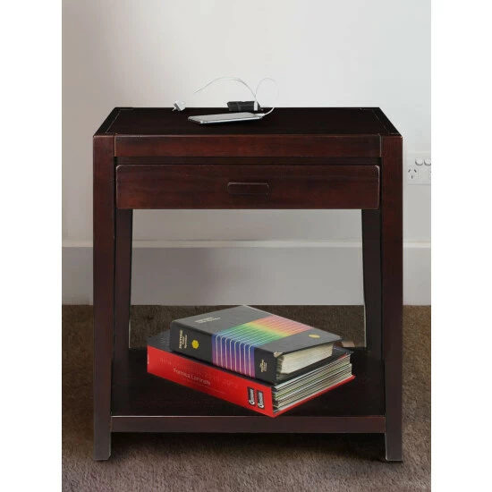 This versatile side table works great as an end table next to your couch, a nightstand next to your bed, and an occasional table anywhere in your home. It’s made of solid hardwood for added beauty and durability and it features four built-in USB charging ports, a spacious open lower shelf, and a generously sized drawer.