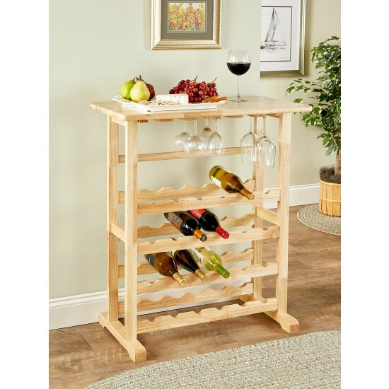 Wine enthusiasts, here’s a way to organize, store, and serve your favorite wines without needing a separate cellar. This solid wood rack holds two dozen wine bottles at the right angle for the corks to stay wet, plus wine glasses. It also has a handy countertop for opening bottles and allowing the wine to breathe. Great for apartments, condos, and other small spaces.