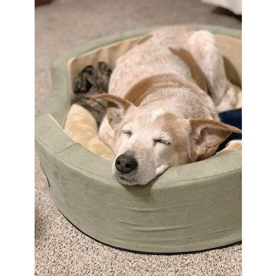 Any pet would love this heated pillow-bed, but it’s especially gentle for those aging companions who may have aches, sore muscles, or arthritis. The bed surface is thick and soft and the bolster walls are nice and high to retain cozy warmth with a cut-out to make climbing in easy. Best of all, it has a dual thermostatic control that warms the bed evenly, so your pet won’t be crammed into one side to stay warm. In the round shape that many dogs love best.
