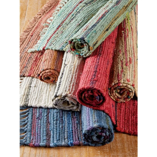 Don’t let looks deceive you! These simple rag rugs wear like iron so they can be tossed down anywhere in the house where they’ll protect your floors while adding style to your home. Plus, they’re reversible, for double the mileage. Each all-cotton rug is fringed on both ends and comes in rustic tones that coordinate with many decors. Owing to the handmade nature of these throw rugs, each is unique so colors may vary slightly.