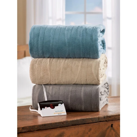 This deluxe electric blanket nests new flexible heating technology between two layers of luxuriously soft microfiber fabric so all you feel is soothing, evenly distributed warmth—no pokey wires!No more getting into a cold bed at night, either—just set the control to one of the 10 heat settings before slipping between the sheets. The control also features a 10-hour automatic shutoff. Twin and full come with a single control; queen and king with dual control.