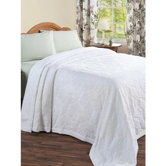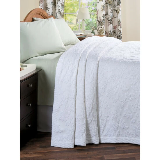 You’ll love the ultra-soft feel and elegant look of this luxurious bedspread. It’s woven with a cotton-rich blend and features a raised Jacobean floral design that brings soft texture to your bedroom’s decor. It’s finished with a textured border that complements the floral design perfectly.