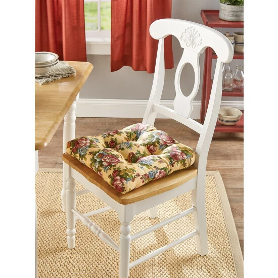 Each chair pad is thick, well-padded, and is filled with a 2-1/2″ thick layer of plush, resilientpolyfill. The pads are covered in a durable cotton-blend fabric and have nonskid bottoms to help to keep them securely in place. They’re made to coordinate with our Tapestry Rose Collection and are vailable in two sizes: standard and jumbo.