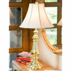 - All lamps include a cream-colored lined fabric lampshade (17″ diameter)