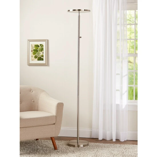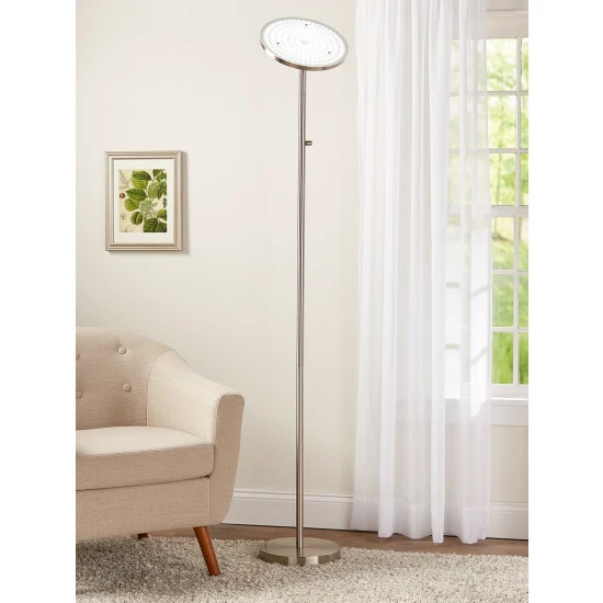 This torchiere is perfect for adding gorgeous uplighting to any room that needs ambient light. The included LED bulbs emit 5000 lumens of light equal to a 500-watt incandescent bulb. The lamp also has a rotary dimmer switch, so you can adjust the brightness to your exact specifications.