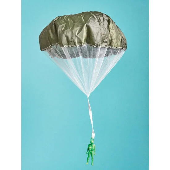 - Parachute is 100% polyester; paratroopers are plastic and stand approx. 4″ tall