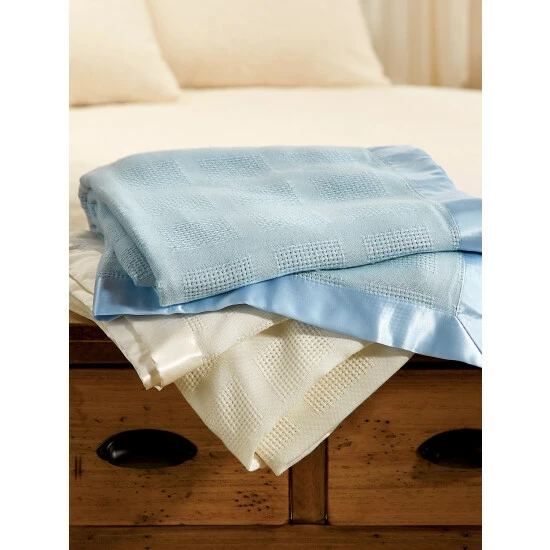 This blanket is inspired by one of our merchants who had such fond memories of an acrylic blanket just like this when she was a child but couldn’t find one like it today. Ours is woven to her specificationsin soft, featherlightacrylic in a loosely woven waffle weave pattern and finished on all 4 sides with satin binding. It’s baby soft, breathable and gets even softer with every wash.